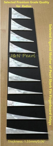J&N Pearl/JNNPEARL 1set Selected Figured White Mother of Pearl Shark Fin Genuinely Solid Premium for Jackson Style Guitars