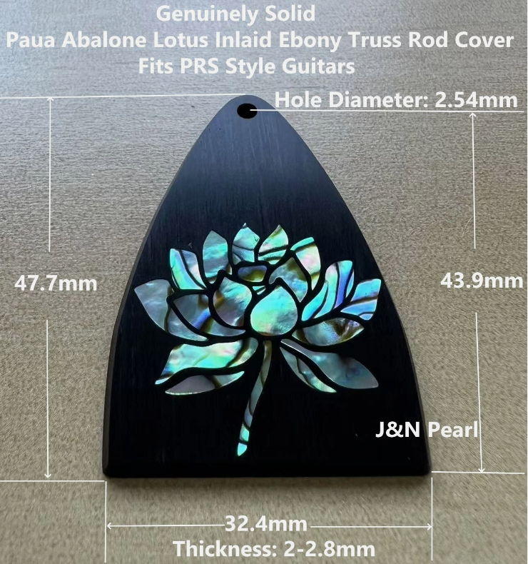J&N Pearl/Jnnpearl Genuinely Paua Abalone Lotus Inlaid Ebony Truss Rod Cover for PRS Style Guitar