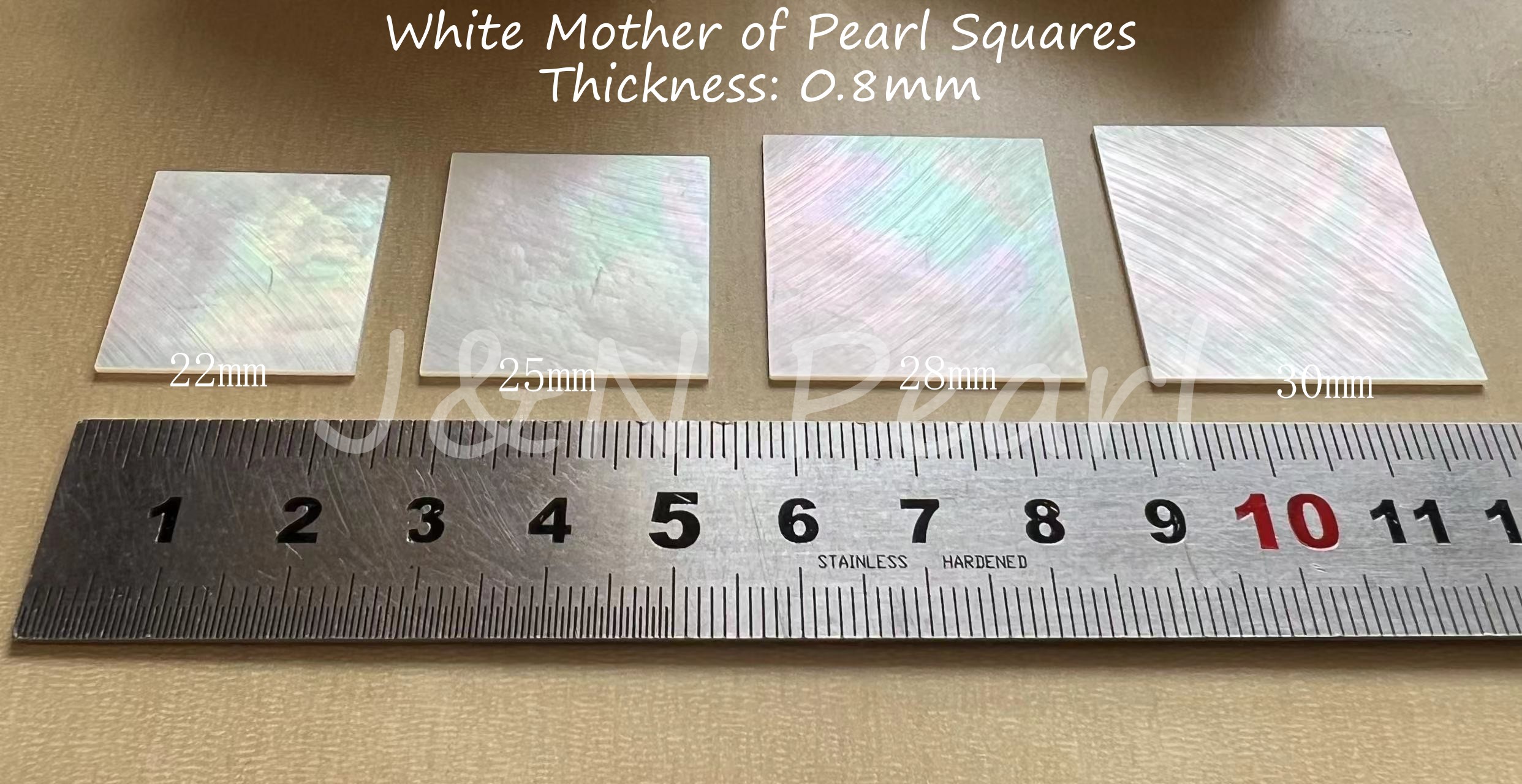JNNPEARL 2pcs 25x25x0.8mm,28x28x0.8mm Solid White Mother of Pearl Inlay Blanks
