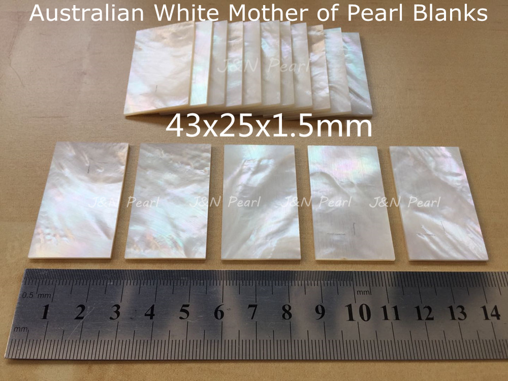 JNNPEARL 2pcs 43x25mm Solid Australian White Mother of Pearl Inlay Blanks
