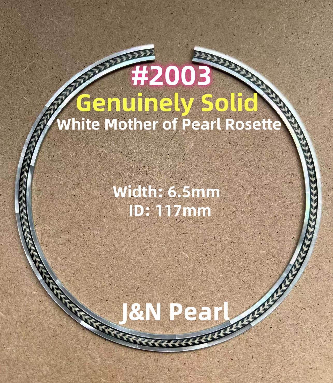 #2003 ID:117 Width 6.5mm Solid Mother of Pearl with Herringbone Wood Purfling Rosette